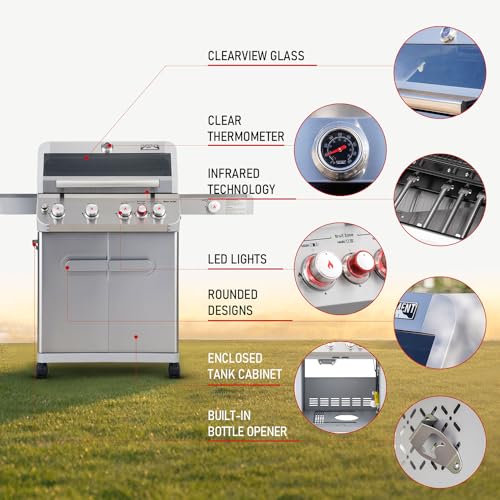 Monument Grills Outdoor Barbecue Stainless Steel 4 Burner Propane Gas Grill, 62,000 BTU Patio Garden Barbecue Grill with Side Burner and Knob Controls, Mesa415BZ
