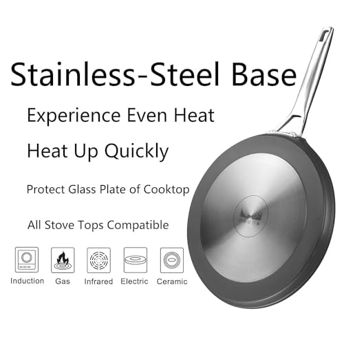 Pro Nonstick: Our ceramic non-stick enhanced diamond technology ensures healthy cooking of food,while eliminating the need for harmful chemicals found in traditional non-stick coatings. Say goodbye to toxic smoke and fumes and enjoy a unique crispy tasting treat that,our crepe pan makes cooking a breeze.